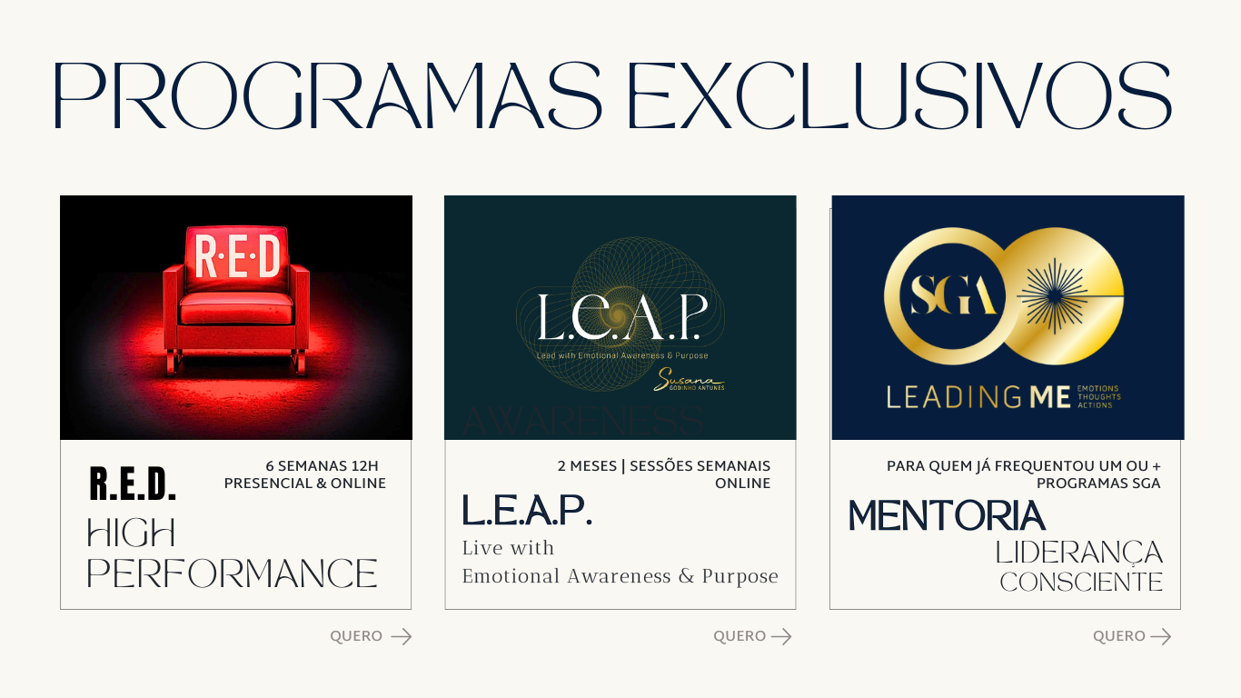 Programas Clique! Escolha o Programa que mais se adapta a Si e ao seu momento actual. R.E.D. Alta Performance Take the L.E.A.P. MentoriaLeading ME